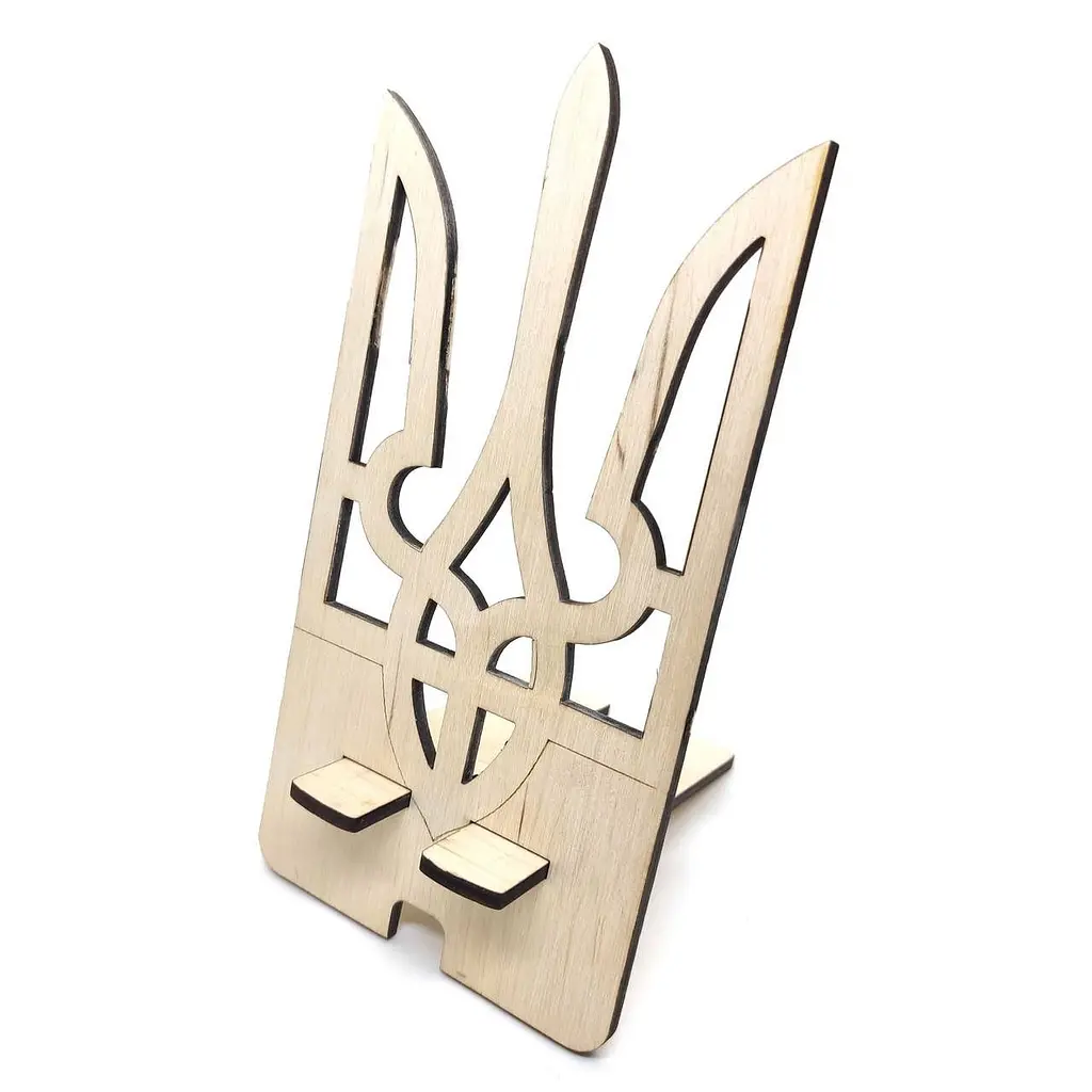 Оригінальна дерев’яна підставка у формі Герба України. Зручна у використанні та стильна як елемент декору.