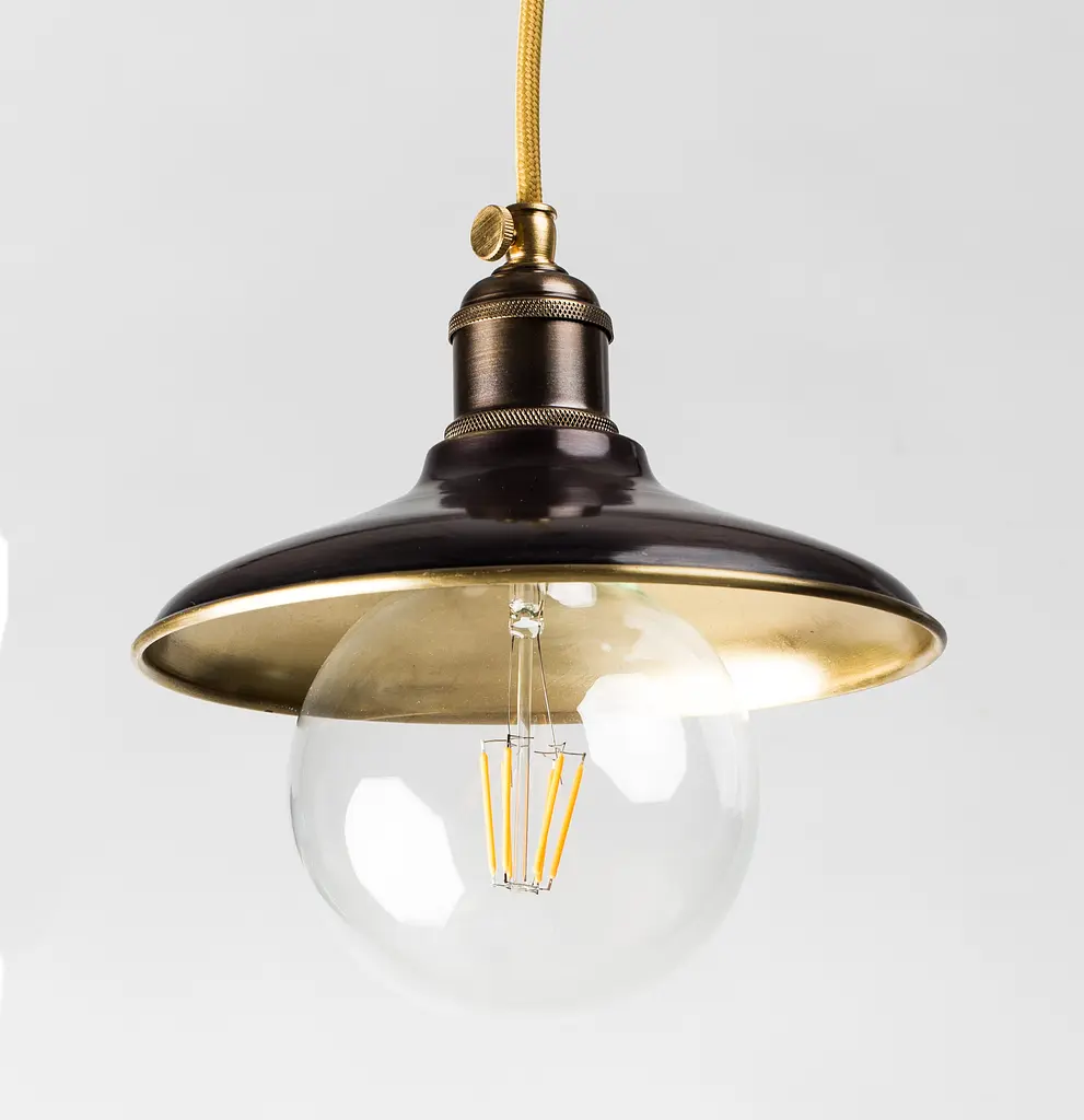 Підвісний світильник PikArt 1194-1 темна патина Підвісний світильник PikArt 1194-1 темна патина буде добре виглядати в приміщеннях, оформлених в стилі лофт, вінтаж. Матеріал - латунь, покриття - лак, патина. Довжина кабелю - 100 см. Оригінальні підвісні світильники PikArt українського виробництва стануть відмінним дизайнерським акцентом в сучасному інтер'єрі. Тип - однолампових. З особливостями - Декоративні. Тип кріплення - Підвісні. Стиль виконання - Сучасний, Лофт, Вінтаж. Вид плафона - Тарілка. Кріплення - На дюбеля. Ширина (мм) - 220. Матеріал основи - Латунь, Метал. Матеріал плафона - Метал. Колір плафона - Бронза, Коричневий, Латунь. Клас захисту IP - IP20. Пульт управління - Ні. Функція діммірованія - Ні. Лампа в комплекті - Ні. Кількість джерел світла - 1. Напруга мережі - 220 В. Тип цоколя - E27 (* стандарт). Потужність, Вт - 60.