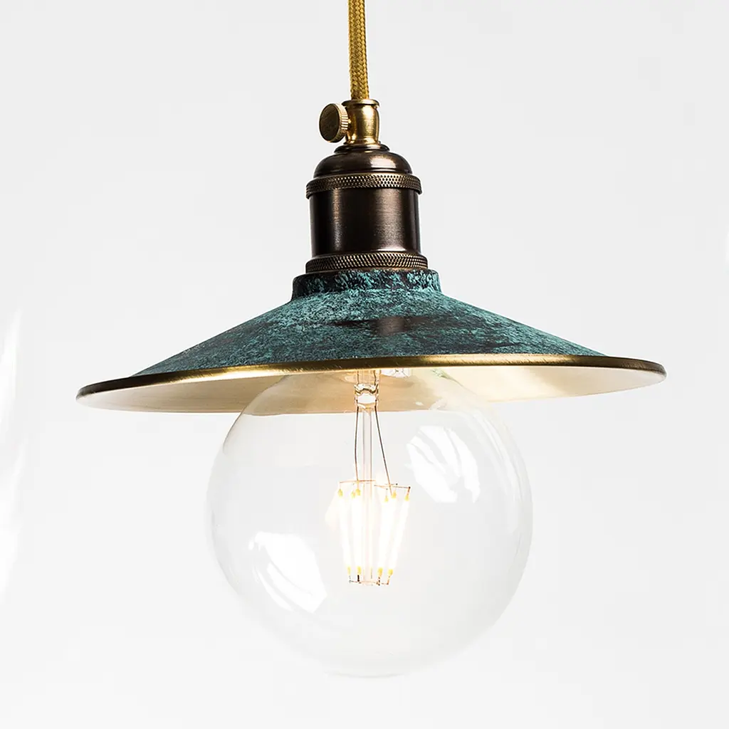 Підвісний світильник PikArt 610-4 зелена патина Підвісний світильник PikArt 610-4 буде добре виглядати в приміщеннях, оформлених в стилі лофт, вінтаж. Матеріал - латунь, покриття - лак, патина. Оригінальні підвісні світильники PikArt українського виробництва стануть відмінним дизайнерським акцентом в сучасному інтер'єрі. Тип - однолампових. З особливостями - Декоративні. Тип кріплення - Підвісні. Стиль виконання - Сучасний, Лофт, Вінтаж. Вид плафона - Тарілка. Кріплення - На дюбеля. Ширина (мм) - 220. Матеріал основи - Латунь, Метал. Колір основи - Зелена патина. Матеріал плафона - Метал. Колір плафона - Зелена патина, Латунь. Клас захисту IP - IP20. Пульт управління - Ні. Функція діммірованія - Ні. Лампа в комплекті - Ні. Кількість джерел світла - 1. Напруга мережі - 220 В. Тип цоколя - E27 (* стандарт). Потужність, Вт - 60.