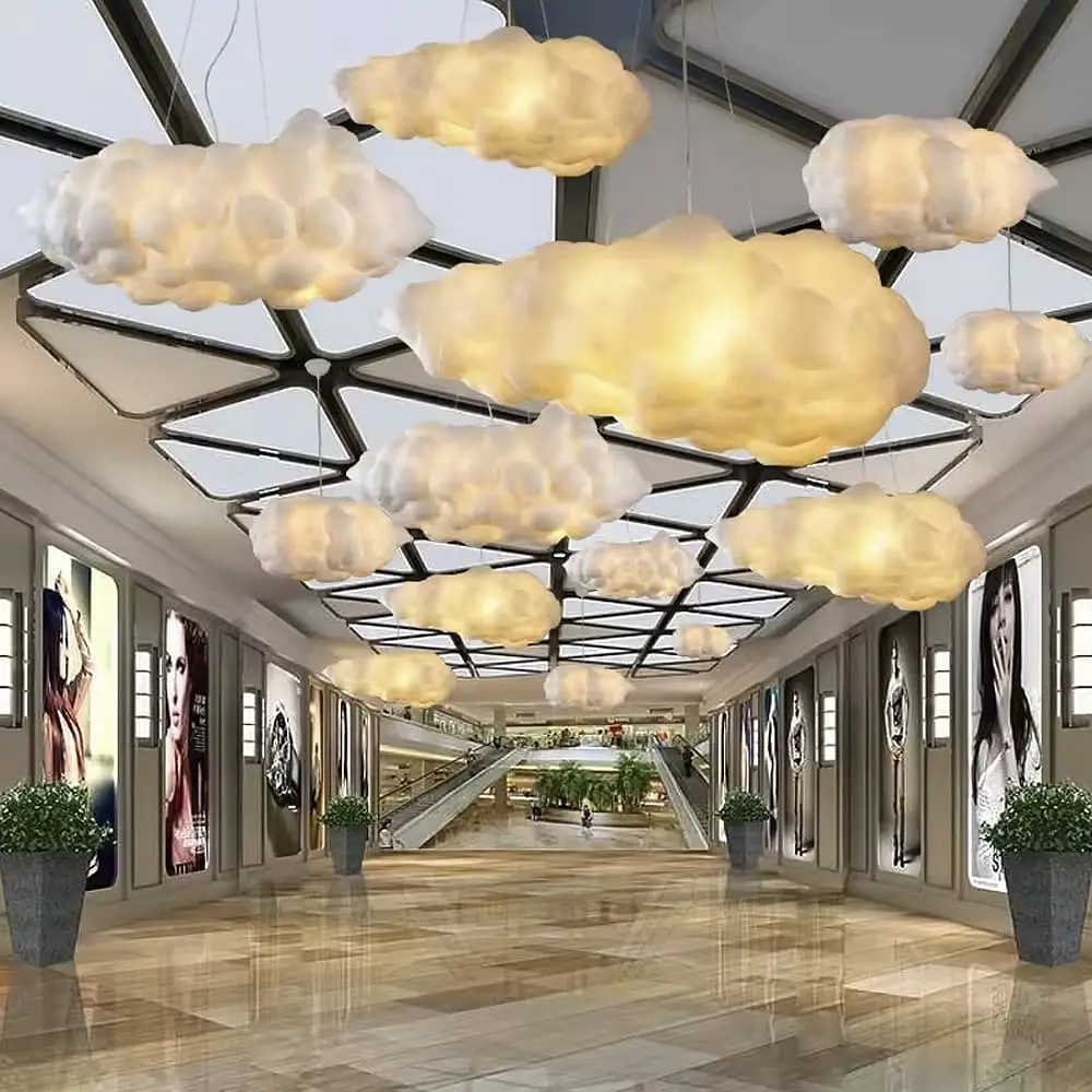 Світильник-хмара - дивовижне і реальне в одному дизайні. Цей світильник відрізняється дизайном білого плафона, що нагадує об'ємну хмаринку, яка ширяє під стелею. Легка і невагома форма світильника підсилюється завдяки поєднанню білого металевого корпусу та неймовірній текстурі плафона із покриттям синтетичним текстилем. Він створений для тих, хто цінує нестандартні рішення та свободу у дизайні, а також прагне додати до своєї оселі унікальний штрих. Цей світильник ідеально підходить для оздоблення інтер'єрів віталень, кухонь, спалень, офісів, а також може використовуватися в кафе та ресторанах, додаючи їм особливої атмосфери. Ця серія підвісних світильників представлена у таких розмірах плафона - 40х20 см, 50х25 см, 60х30 см, 60х35 см та більш габаритні (під замовлення): 80, 100, 120 та 150 см. Тип цоколя: 80 Тип приміщення: Люстри для дитячої Форма_виробу: Асиметрична Серія: MJ 213 Колір основи: Білий Колір плафона: Білий Розмір стельової основи: 7х11 см Максимальна висота: 170 см Мінімальна висота: 60 см Матеріал основи: Метал, Текстиль Розмір монтажної планки: 10,5 см Тип кріплення: Монтажна планка Кількість джерел світла: 5