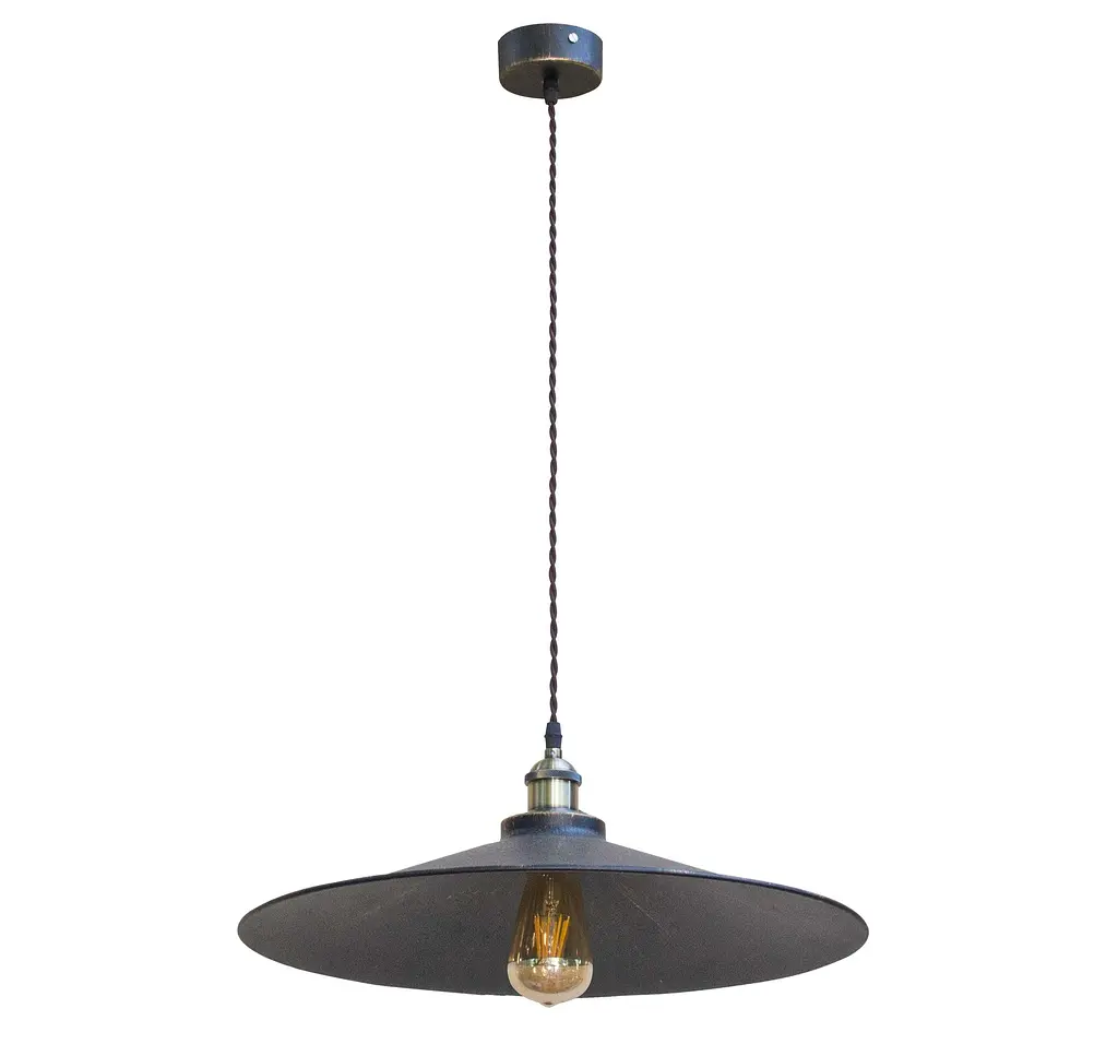 Тип: Підвіси Стиль: Лофт Матеріал основи: Метал Колір основи: Бронза Матеріал плафона: Метал Колір плафона: Бронза Рекомендований тип лампи: Світлодіодна лампа Лампа в комплекті: Немає Кількість джерел світла: 1 Додатково: Декоративний провід Клас захисту (IP): IP20 Напруга мережі: 220-240 Тип цоколя: E27 Тип кріплення: Пластина Потужність (Вт): 60 Висота (мм): 700 Діаметр (мм): 450