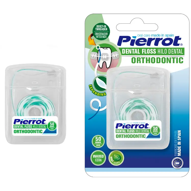 Зубна нитка Pierrot Ortodontic Dental Floss ідеально підходить для людей з брекетами, ретейнерами та протезами, забезпечуючи покращений догляд за порожниною рота. Завдяки витонченому кінчику вона легко проникає в важкодоступні місця, що робить очищення більш ефективним.