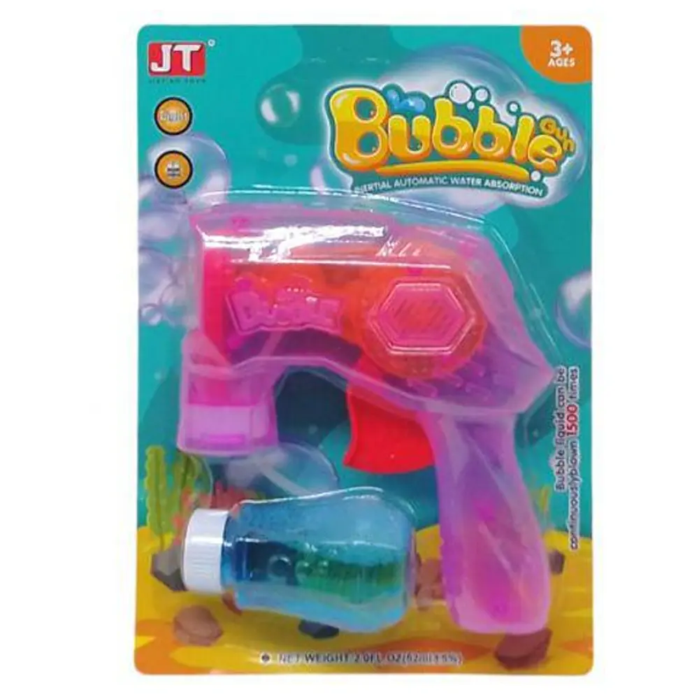 Пістолет з мильними бульбашками, JT6907 пропонує веселу гру з мильними бульбашками. Виготовлений із міцного пластику, включає мильний розчин. Легкий у використанні, ідеально для дитячих свят на свіжому повітрі. Створюйте радісні моменти з бульбашками!