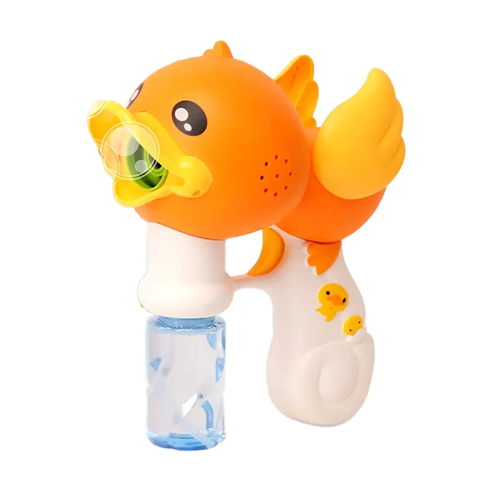 Пістолет з мильними бульбашками Каченя, 2 пляшечки з мильним розчином – Пістолет із мильними бульбашками Каченя із двома пляшечками мильного розчину – чудовий подарунок для дітей. Виготовлений із міцного пластику, працює на батарейках, створює потік бульбашок. Милий дизайн каченяти сприяє веселим іграм. Ідеально для свят на свіжому повітрі.