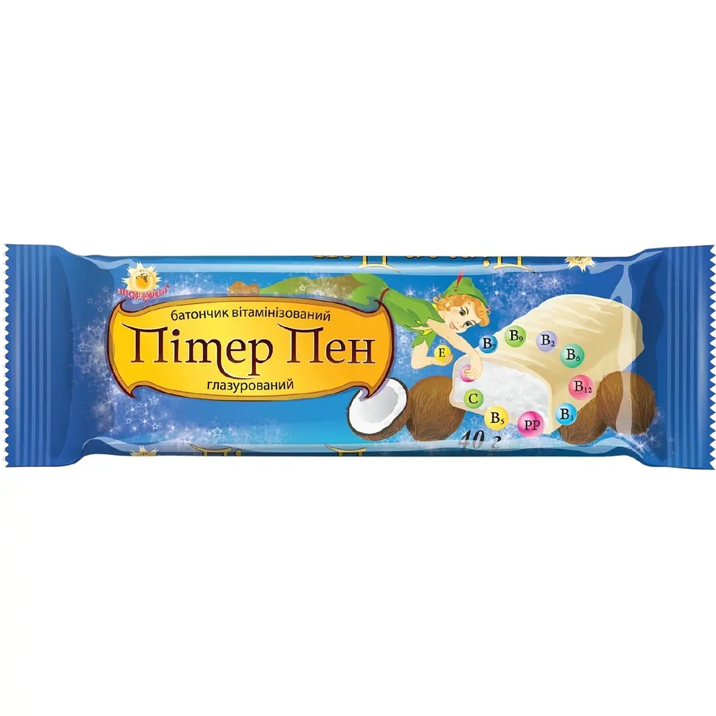 Батончик Пітер Пен вітамінізований кокосовий у білій глазурі може бути використаний в раціонах дієтичного харчування для загального зміцнення організму як додаткове джерело білків, жирів, вуглеводів, вітамінів, макро- і мікроелементів.