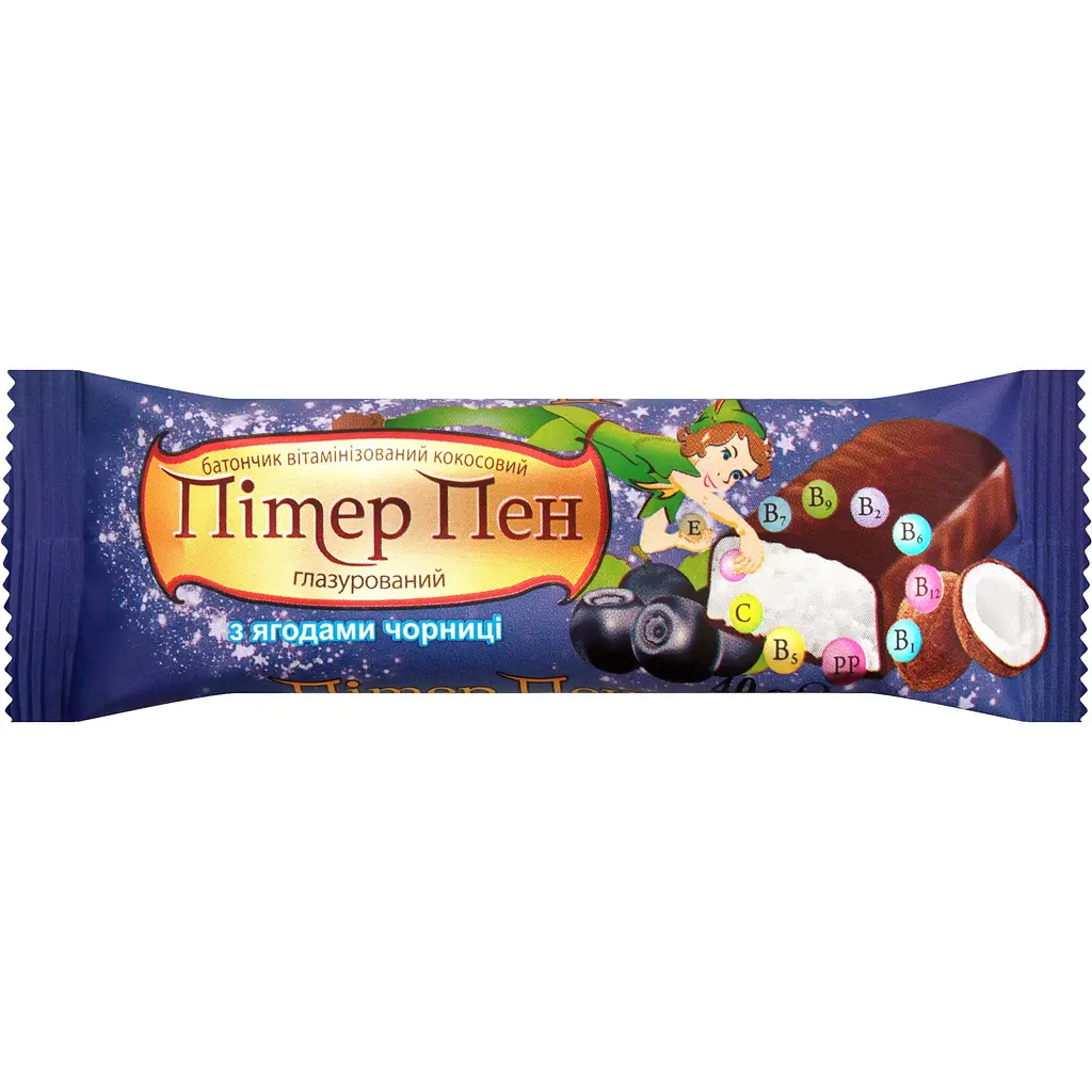 Батончик Пітер Пен вітамінізований кокосовий у шоколадній глазурі з чорницею може бути використаний в раціонах дієтичного харчування для загального зміцнення організму як додаткове джерело білків, жирів, вуглеводів, вітамінів, макро- і мікроелементів.