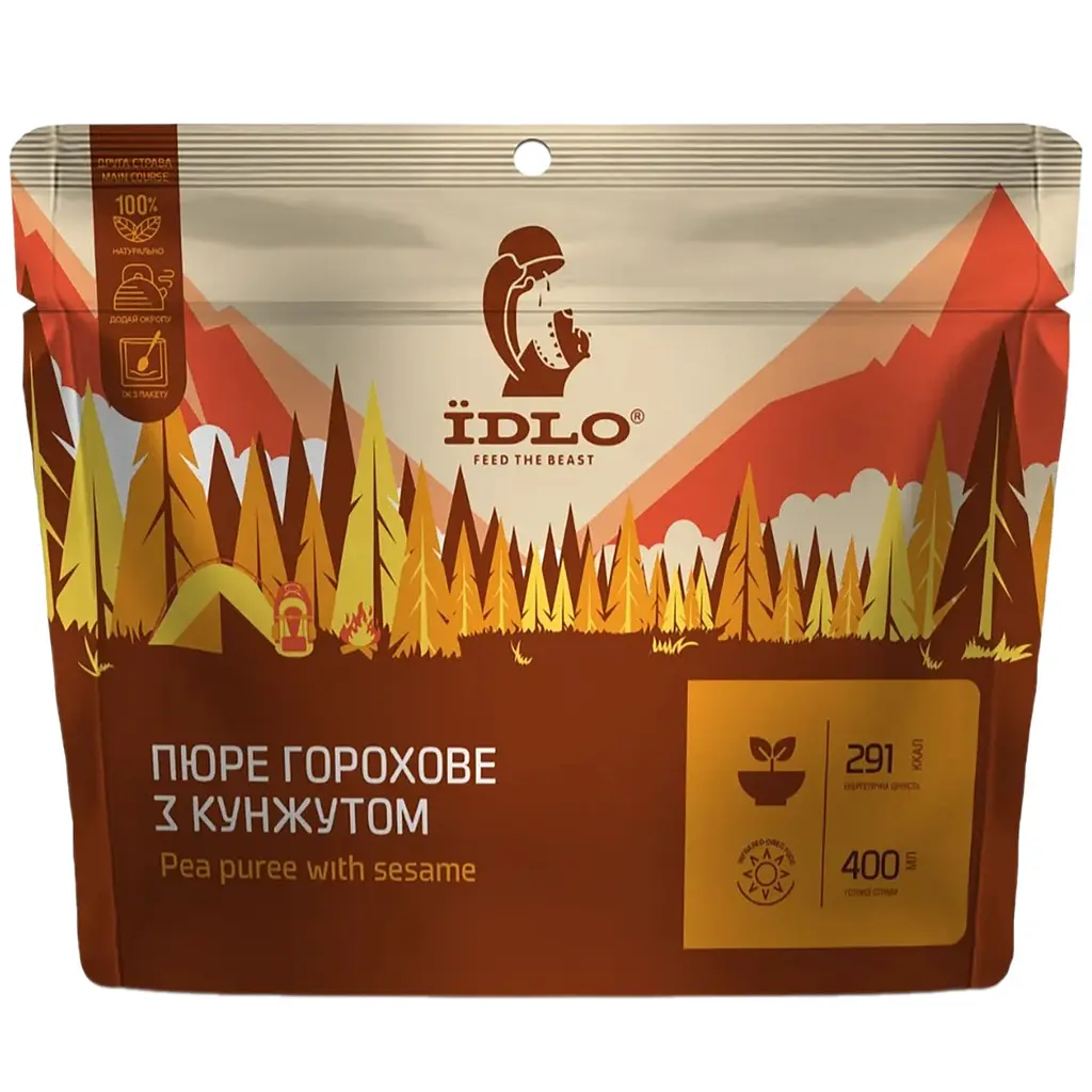 Пюре Їdlo горохове з кунжутом з гордістю виготовлено в Україні методом інфрачервоної сушки натуральних інгредієнтів. Маса порції: 400 г.