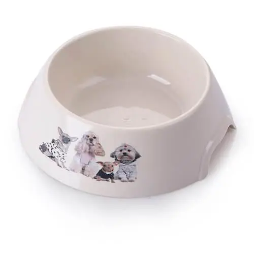 Спеціальне заглиблення для пальця дозволяє легко переміщати миску; Малюнок на виробі стійкий до води, миючих засобів, підвищення температури