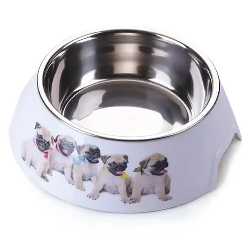 Спеціальне заглиблення для пальця дозволяє легко переміщати миску; Малюнок на виробі стійкий до води, миючих засобів, підвищення температури; у комплекті металева вставка - миска, яка виймається і легко миється.