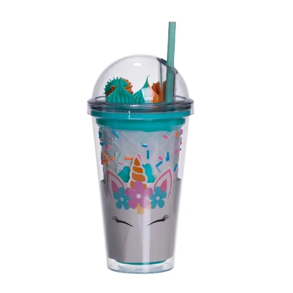 Ця яскрава склянка із чарівним єдинорогом стане улюбленим аксесуаром для дітей та дорослих. Зручна кришка з трубочкою захищає від проливань, а подвійні стінки зберігають прохолодний напій і запобігають запотіванню.