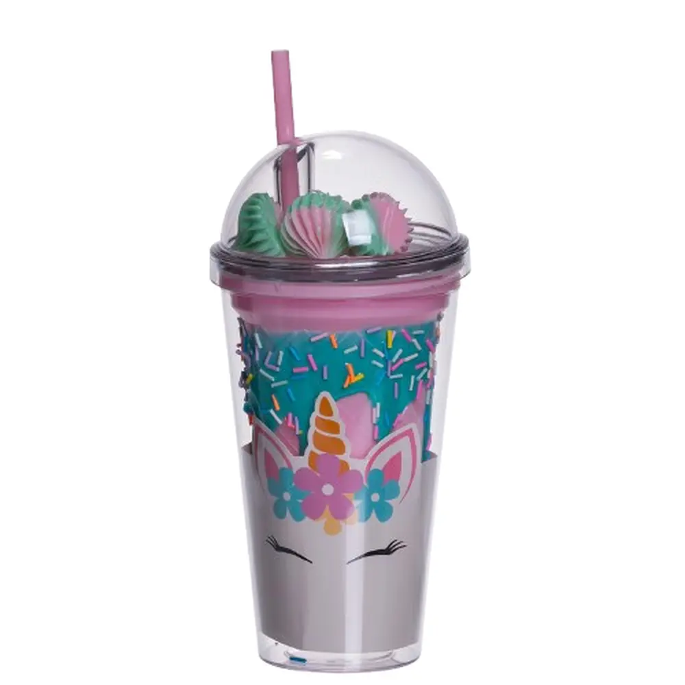 Ця яскрава склянка із чарівним єдинорогом стане улюбленим аксесуаром для дітей та дорослих. Зручна кришка з трубочкою захищає від проливань, а подвійні стінки зберігають прохолодний напій і запобігають запотіванню.