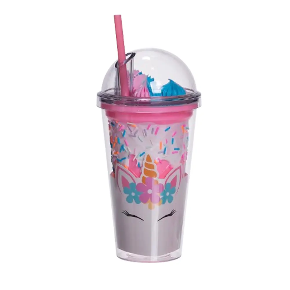 Ця яскрава склянка із чарівним єдинорогом стане улюбленим аксесуаром для дітей та дорослих. Зручна кришка з трубочкою захищає від проливань, а подвійні стінки зберігають прохолодний напій і запобігають запотіванню.
