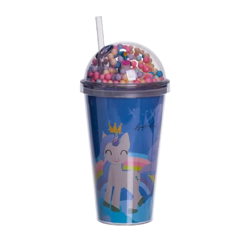 Ця яскрава склянка із чарівним єдинорогом стане улюбленим аксесуаром для дітей та дорослих. Зручна кришка з трубочкою захищає від проливань, а подвійні стінки зберігають прохолодний напій і запобігають запотіванню.