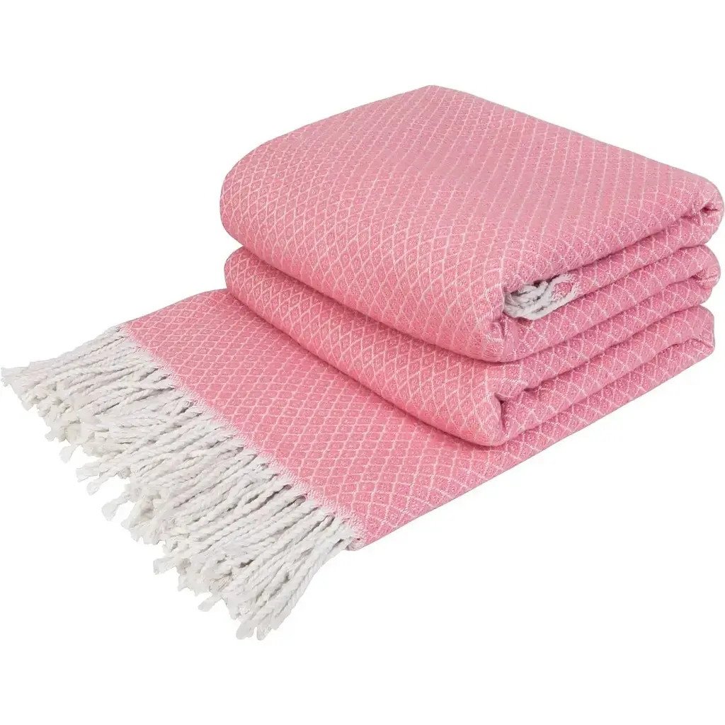 Бавовна - це м'який і легкий у догляді матеріал, який можна прати у пральній машині. Бахрома включена до розміру пледа. Такий плед обов'язково стане окрасою вашої оселі.