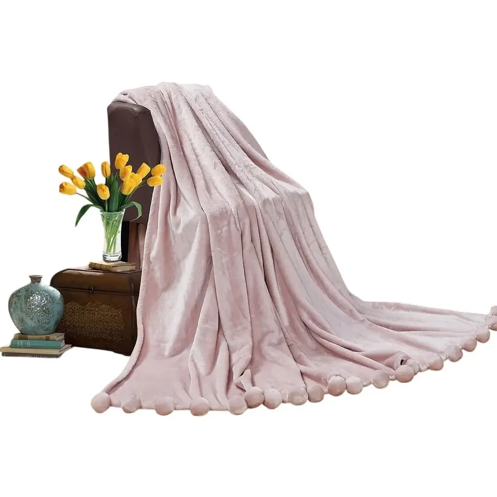 Плед Love You прикрашений елегантними помпонами. Напрочуд м'який і приємний, має ніжний колір із малюнком, буде гарною прикрасою будь-якого інтер'єру.