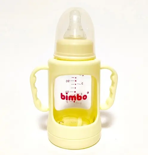 Скляна пляшка для годування із силіконовою соскою від виробника TM Bimbo. Пляшка виготовлена з високоякісних та безпечних матеріалів: скло, поліпропілен та силікон, вона повністю відповідає основним санітарним нормам та ретельно проходить контроль якості. Пляшка виготовлена із стійкого до пошкодження матеріалу, який не вступає у хімічну реакцію з молоком та не виділяє шкідливих речовин при нагріванні та стерилізації. Дизайн поєднує в собі комфорт та зручність. М'який силіконовий захист, що повністю обволікає скляну пляшечку, а знімні ручки, з боків, дозволять малюкові самостійно тримати пляшечку. Соска виготовлена із силікону. Баночка обладнана шкалою для вимірювання об'єму. Об'єм пляшечки – 120 мл. Розмір пляшечки: 10 х 5 х 14 см Упаковка: коробкаРозмір упаковки: 10 х 7 х 19 см * Характеристики та комплектація товару можуть змінюватися виробником без попередження