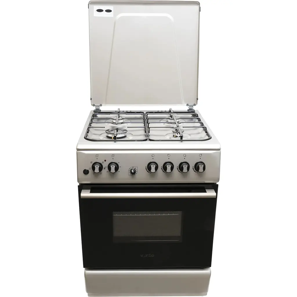 Плита виконана з нержавіючої сталі, що робить її доволі універсальним рішенням для кухні – що сучасної, що класичної. Зверху розміщена газова варильна поверхня з 4 конфорками та кришка, яка закриває стіну від частинок жиру. Над конфорками дві решітки з чавуну.
