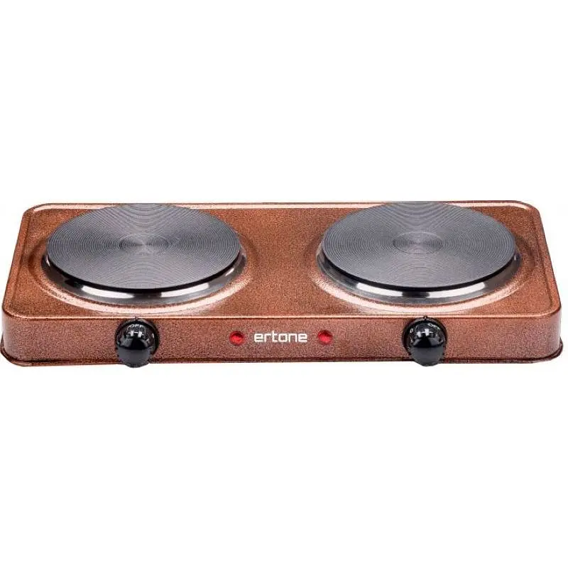 Настільна плита Ertone ERT-MN 200-MR - чудовий варіант двокомфоркової настільної. електроплити, що робить її мінімальною за розміром та вагою, збільшуючи її мобільність. На верхній частині розміщені конфорки середньої потужності, що дозволить вам варити, смажити, гасити і кип'ятити воду. Регулювати потужність пристрою можна за рахунок поворотних регуляторів, які дозволять швидко вибрати тип приготування. Потужність представленої моделі дорівнює 2000 Вт, що дозволить плиті миттєво. нагрівати та ефективно готувати їжу. Конфорки виготовлені з чавуну. Діаметр конфорок дорівнює 15 сантиметрам, а потужність 1000 Вт.