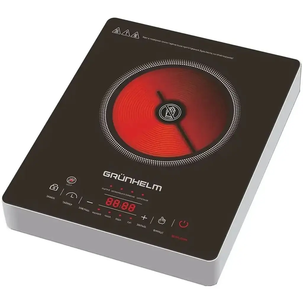 Плита одноконфоркова електрична кухонна Grunhelm GIR-809 інфрачервона 2000 Вт Чорна - 5 автоматичних програм