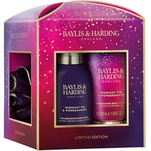 Розкішний міні-набір доглядових засобів для душу Midnight Fig & Pomegranate від Baylis & Harding. Вишукані декадентські ноти оксамитового інжиру та соковитого гранату надають цій лімітованій колекції витонченого звучання. Колекція чудово представлена насиченими пурпуровими тонами, підкресленими гарячими рожевими та розкішними золотистими деталями.