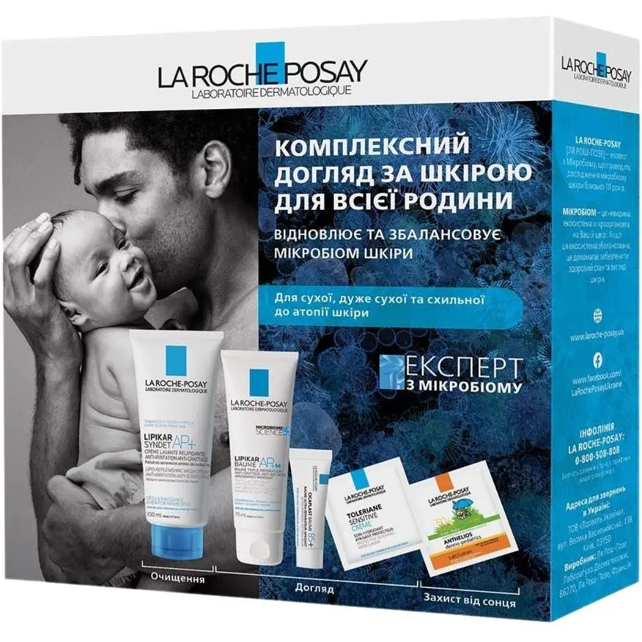 Подарунковий набір La Roche-Posay Lipikar Комплексний догляд за шкірою для всієї родини містить 5 засобів для сухої та схильної до атопії шкіри.