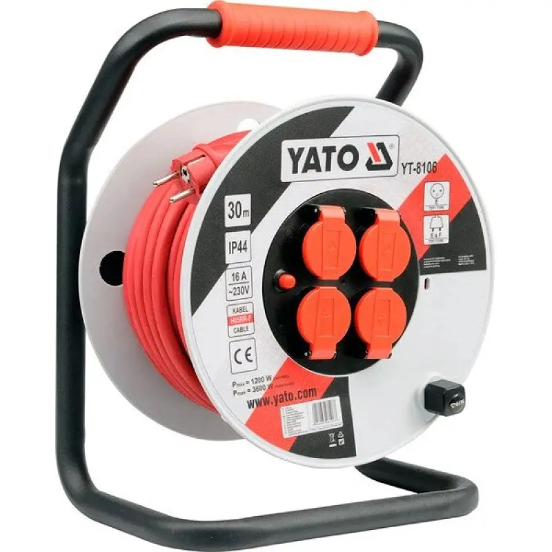 Подовжувач мережевий Yato оснащений заземленими 4 розетками й дозволяє під'єднати електроприлади на відстані.