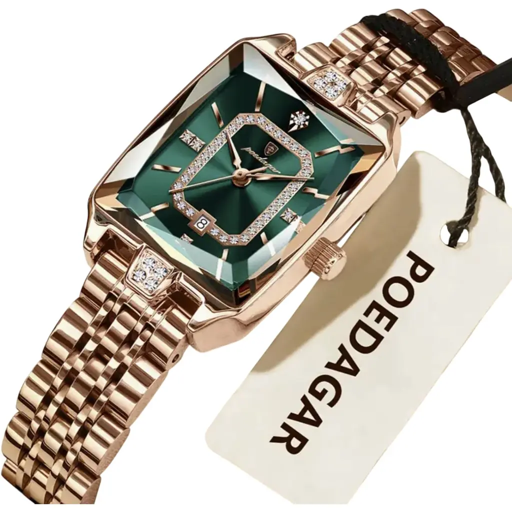 Товщина: 10 мм, Вага, г: 100, Фабрика складання: Китай, Функції: Дата, Діаметр: 25 мм, Індикація: Секунди, хвилини, години, Скло: Мінеральне, Особливості: Інструкція російською мовою, Вид індикації: Індекси, Водостійкість: 3 атм - мити руки, Формат часу: 12 год, Колір корпусу: Золотистий, Механізм: Кварцовий, Стиль: Класичний, Тип циферблата: Аналоговий (стрілковий), Розміри, мм: 25х10, Тип механізму: Quartz, Матеріал корпусу: Сталь, Матеріал ремінця: Сталевий, Ремінець/браслет: Браслет, Матеріал: Метал, Тип: Жіночі, Колір ремінця: Золотистий, Застібка: Дворівнева, За діаметром годинника: Середні, Довжина ремінця: 20 см (регулюється), Гарантія: 12 місяців, Основний колір циферблата: Зелений, Тип цифр: Індекси, Задня кришка: Закрита, Тип годинника: Класичний годинник, Для жінок: Для жінок, Точність ходу: +/- 1 сек/день, Виробник: Poedagar