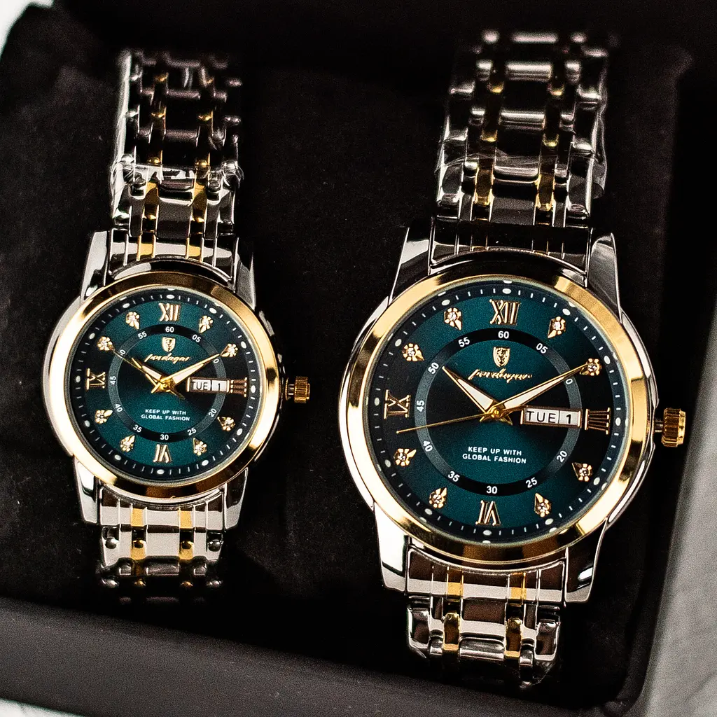 Poedagar Unique Couple - парна модель годинників призначена для закоханих половинок та хороших друзів.В комплекті йде: 2 годинники (чоловічий та жіночий), а також подарункова коробочка.Такий набір стане ідеальним подарунком для вашої близької людини.Poedagar Unique - лімітована версія популярної моделі Poedagar з унікальним відтінком циферблату.Poedagar - це поєднання елегантності, точності та сучасного стилю. Годинники цього бренду створені для тих, хто цінує витонченість у деталях та прагне підкреслити свою індивідуальність.Кожна модель Poedagar - це:Якісні матеріали: нержавіюча сталь, міцне мінеральне скло, надійні кварцові механізми.Стильний дизайн: від класичних рішень до сучасних спортивних форм.Функціональність: водозахист, індикатор дати, світловідбивні стрілки та інші корисні функції.Poedagar - це ідеальний вибір для ділових зустрічей, повсякденного стилю або особливих подій. Це не просто годинник - це вираз вашого смаку, впевненості та стилю.В комплекті йде офіційна гарантія на 12 місяців та подарункова коробочка.