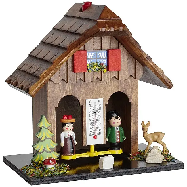 Виробник: TFA Dostmann GmbH & Co.KG, GermanyОсобливості:Вироблено в НімеччиніНостальгічний погодний будиночок з дереваЗ "сонячної жінкою" і "дощовим чоловіком"Термометр в градусах Цельсія і ФаренгейтаЗ термометромГарантія 3 рокиЧиста ностальгія! Цей маленький погодний будиночок, як і за часів прабабусі, є класичним гігрометром. Синтетичні волосся реагують на вологість і відповідно скорочуються або розширюються. У суху погоду з будиночка з'являється жінка; в сиру погоду чоловік підходить до дверей. Термометр також вимірює температуру. Погодний будиночок зроблений з дерева і повністю виготовлений в Німеччині.Основним елементом TFA є власне виробництво механічних погодних інструментів. TFA створює продукцію, що відповідає етикетці «Зроблено в Німеччині», з використанням найсучасніших технологій виробництва і традиційного ремісничого виробництва. Продукція від TFA переконує в функціональності і дизайні.