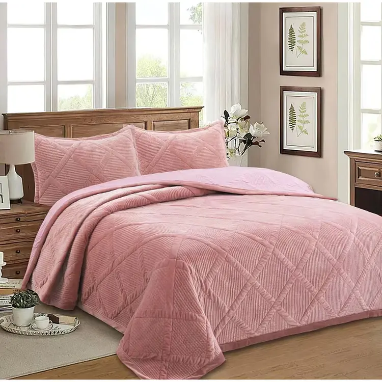 Покривало виготовлене з високоякісного велюру, який надає йому м'якості та особливо приємне на дотик. Велюровий матеріал відомий своєю міцністю та довговічністю, а також здатністю зберігати первинний вигляд навіть після численних прань. Покривало не втрачає свій колір і текстуру, що робить його відмінним вибором для щоденного використання.