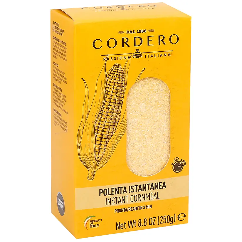 Полента - це традиційна італійська страва, яка готується з кукурудзяної крупи. Вона має кремову текстуру і може подаватися як гарнір, основна страва або навіть десерт. Полента Cordero швидкого приготування - це високоякісний продукт, виготовлений з відбірної кукурудзи, який дозволить вам приготувати смачну та ароматну страву.