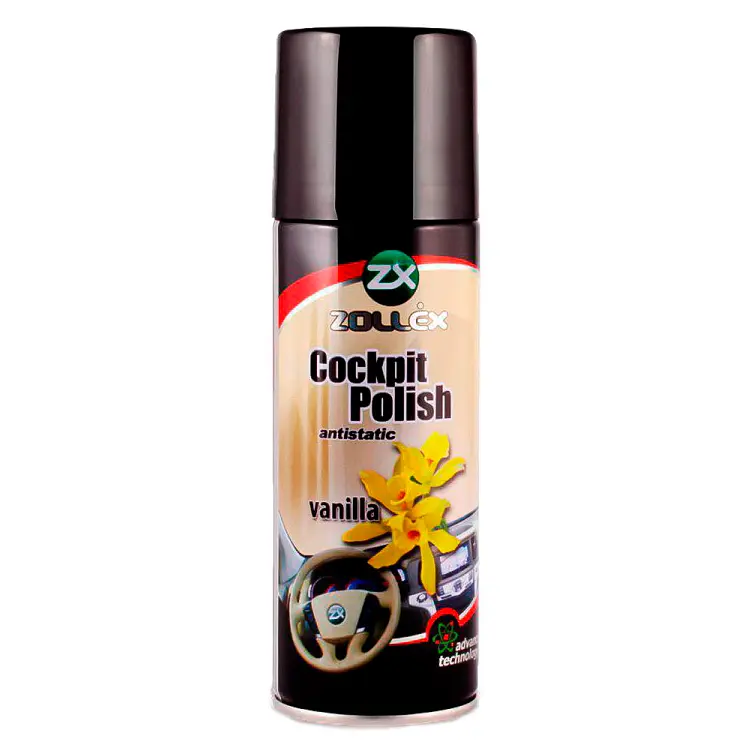 Багатофункціональний засіб, призначений для комплексного догляду за твердими поверхнями салону автомобіля. Ефективно очищає, полірує, відновлює насиченість кольору і надає гарний блиск приладовій панелі, пластиковим вставкам на дверях, а також на інших поверхнях з пластмас, вінілу або гуми. Завдяки активній формулі засіб якісно видаляє навіть найдрібніший пил з текстури і пошкоджень поверхні, гарантує ідеальну чистоту і відновлює насиченість кольору. Надає гарний ненав'язливий блиск, який маскує дефекти у вигляді подряпин або потертостей і забезпечує візуальну гладкість поверхні. Zollex Cockpit polish VA200 ваніль 200 мл має приємний аромат, який підвищує комфорт під час очищення і усуває сторонні запахи.