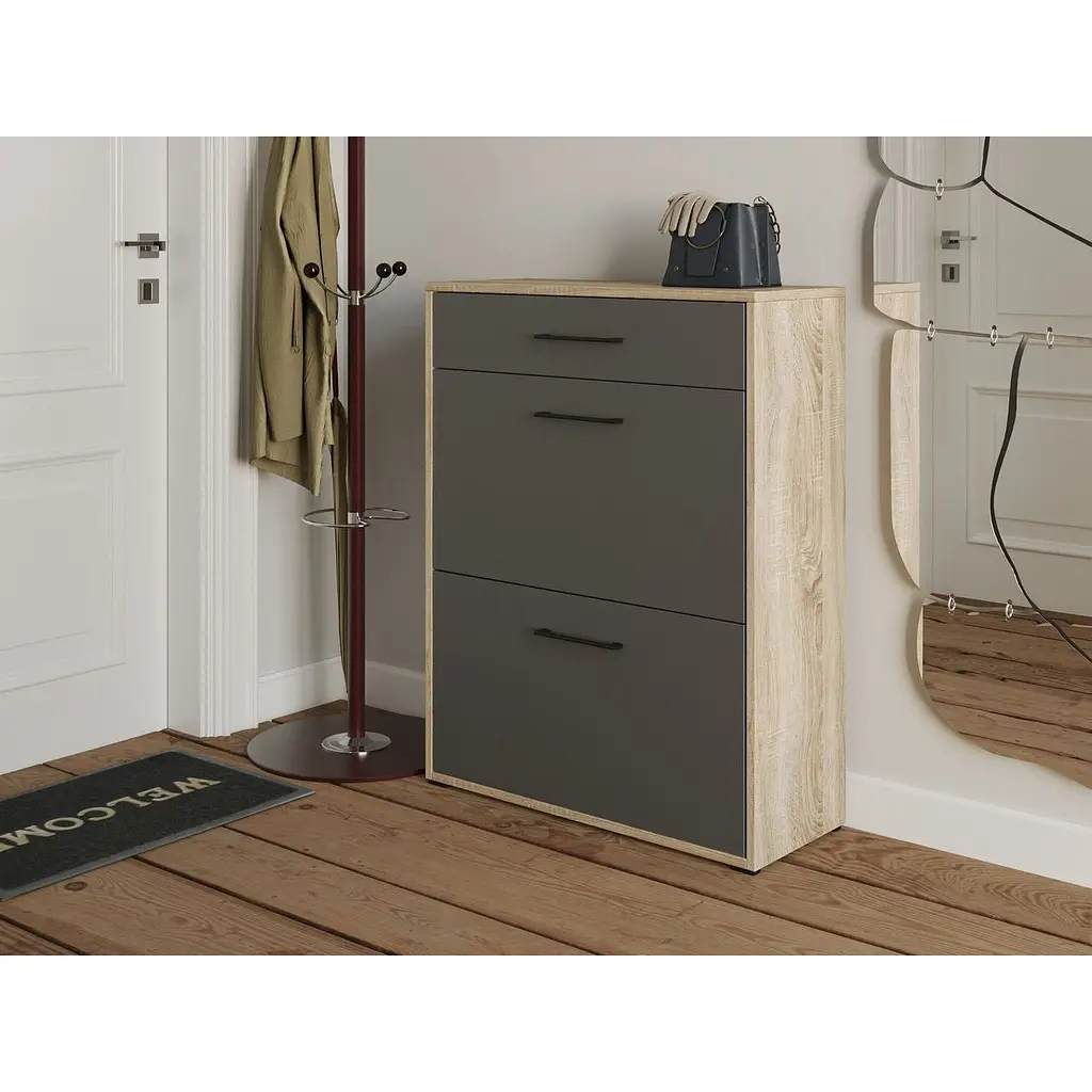 • Полиця для взуття Flamecame на 3 шухляди з ДСП II FT-7 Дуб сонома Антрацит - мініатюра 1