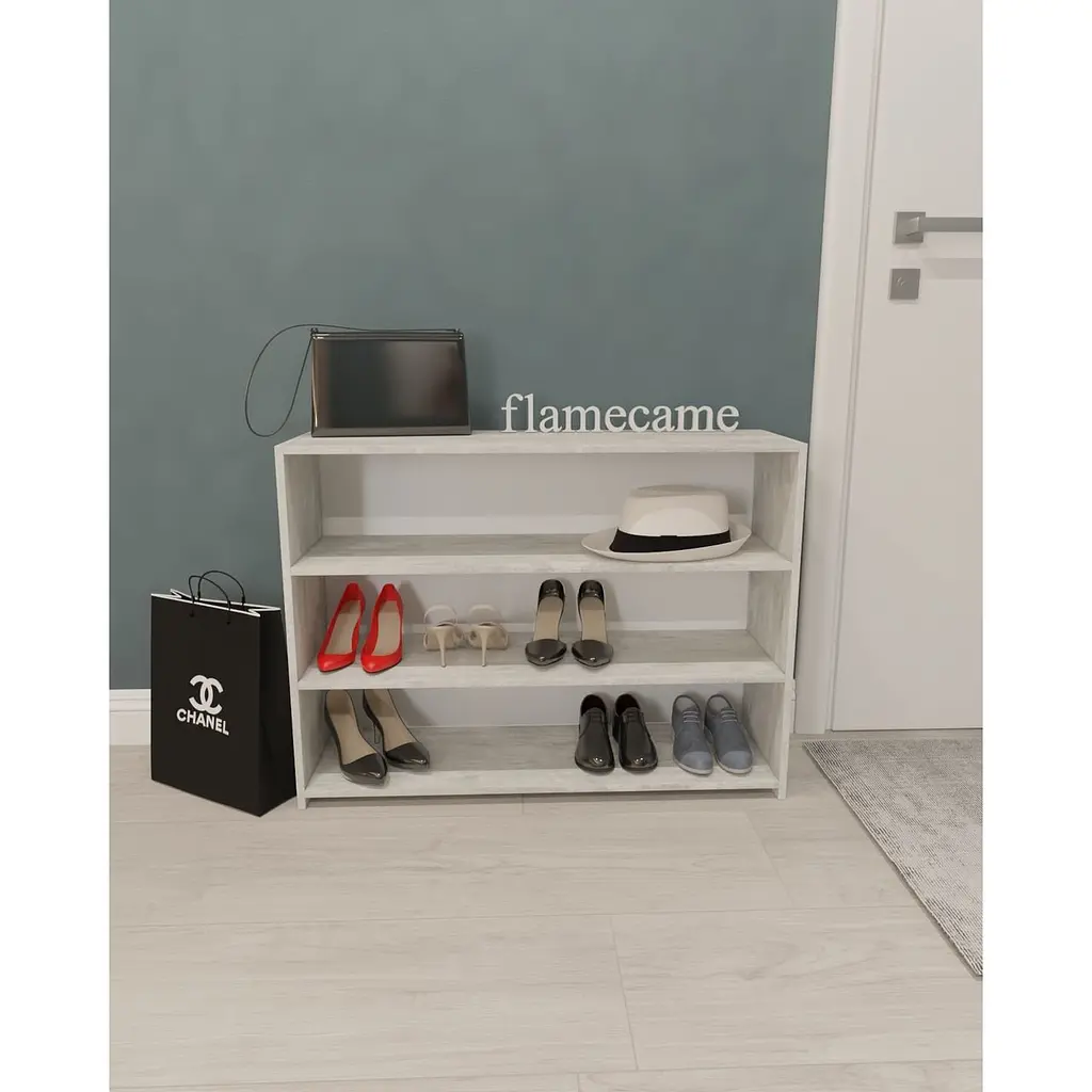 • Полиця для взуття Flamecame підлогова для дому трирівнева з ДСП II OF-950 Бетон - мініатюра 1
