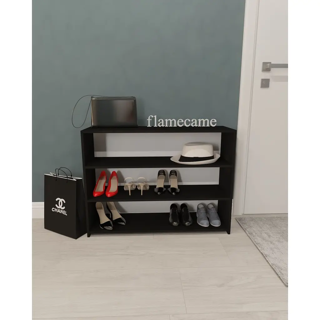 Полиця для взуття Flamecame підлогова для дому трирівнева з ДСП II OF-950 Чорний