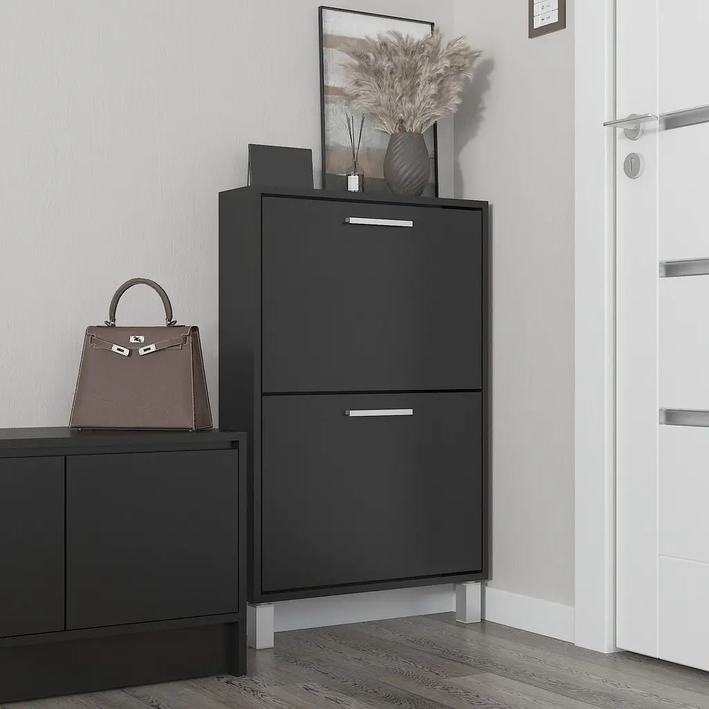• Полиця для взуття Flamecame підлогова на 2 шухляди з ДСП F-158 Чорний - мініатюра 1