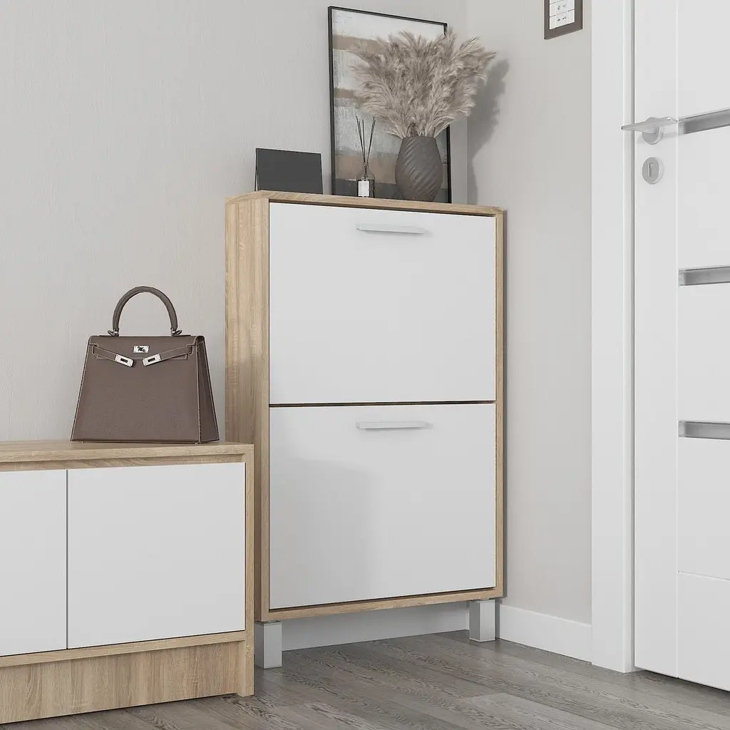 • Полиця для взуття Flamecame підлогова на 2 шухляди з ДСП F-158 Дуб сонома Білий - мініатюра 1