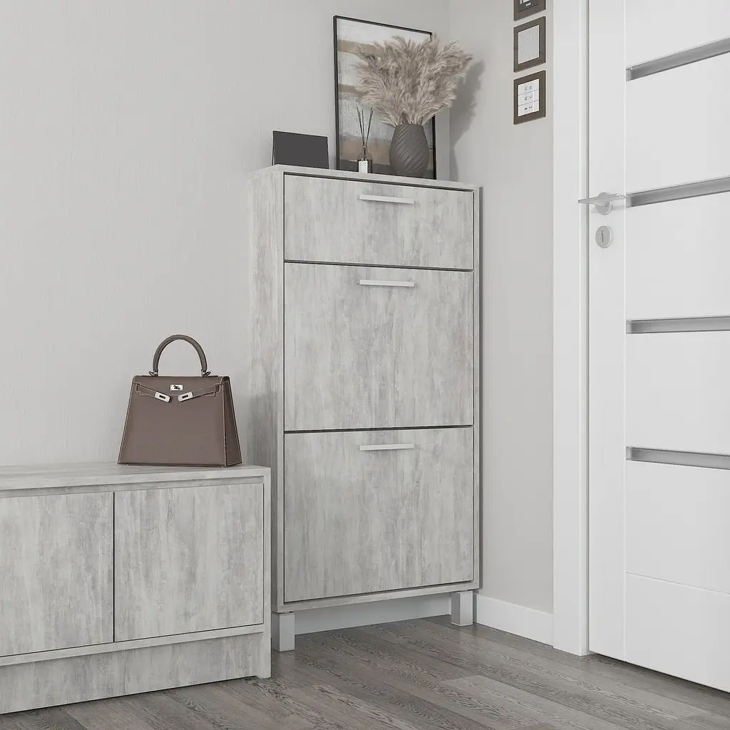 Полиця для взуття підлогова на 3 шухляди, тумба в передпокій для взуття з ДСП F-159. Поличка для взуття в передпокій- компактна, але дуже містка конструкція, адже вона дозволяє одночасно зберігати декілька пар взуття. Виконана з ДСП 16 мм. Полиці кріпляться на стіну.