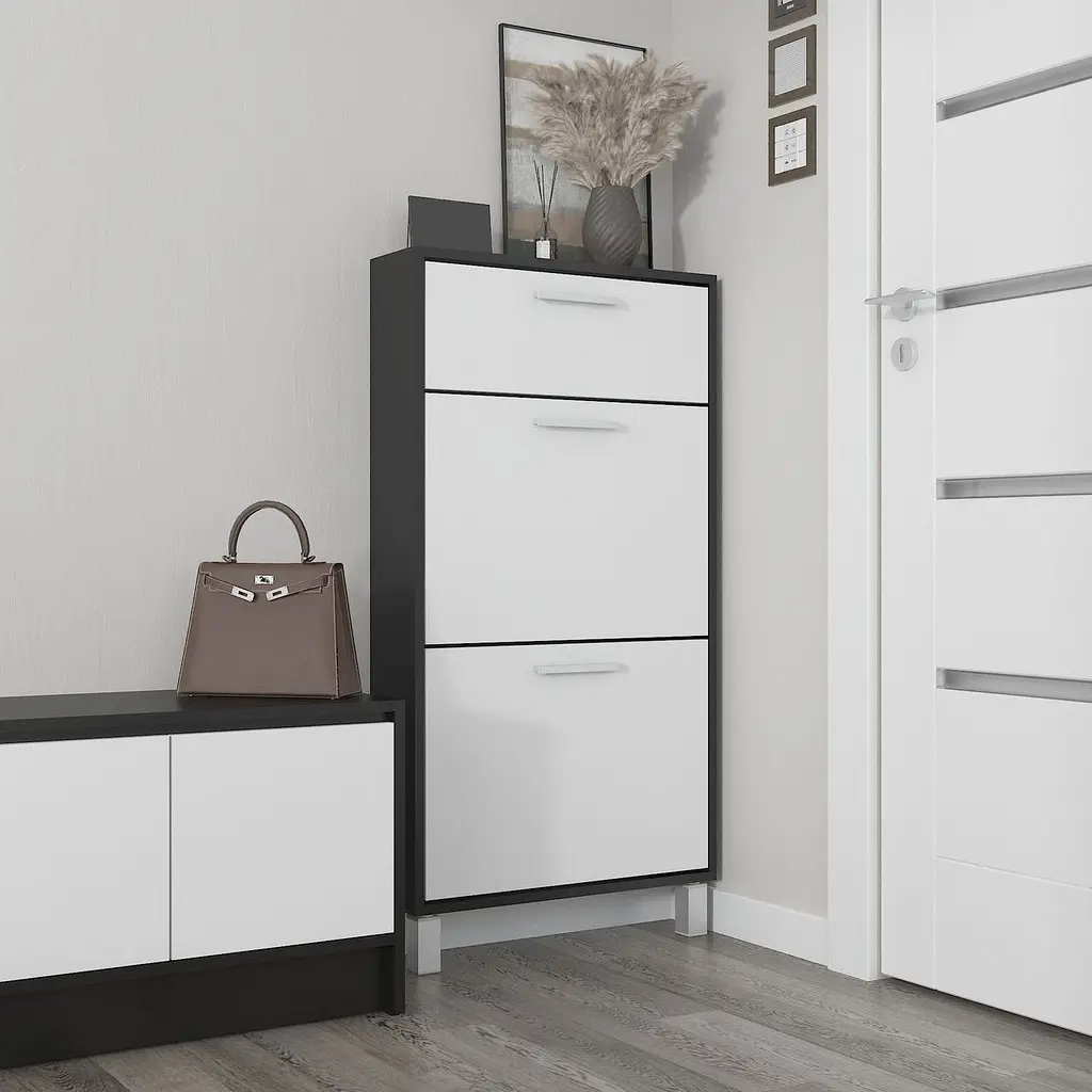• Полиця для взуття Flamecame підлогова на 3 шухляди з ДСП F-159 Чорний Білий - мініатюра 1