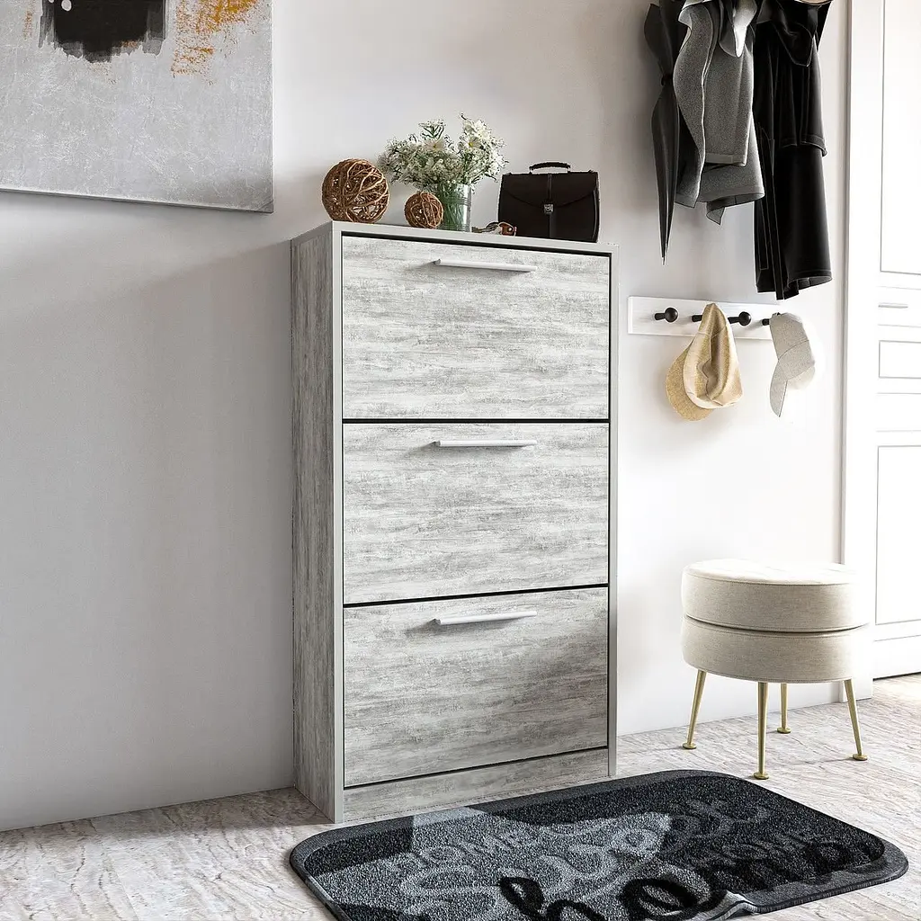 • Полиця для взуття Flamecame підлогова на 3 шухляди з ДСП з ручками в стилі лофт II FST-21 Бетон - мініатюра 1