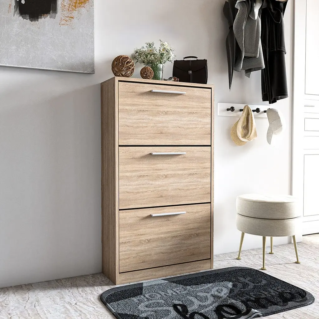 • Полиця для взуття Flamecame підлогова на 3 шухляди з ДСП з ручками в стилі лофт II FST-21 Дуб сонома - мініатюра 1