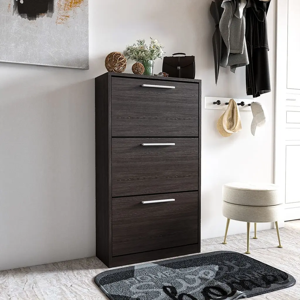 Полиця для взуття підлогова на 3 шухляди з ДСП з ручками в стилі лофт FST-21. Взуттєва поличка для взуття - компактна, але дуже містка конструкція, адже вона дозволяє одночасно зберігати декілька пар взуття. Виконана з ДСП 16 мм.
