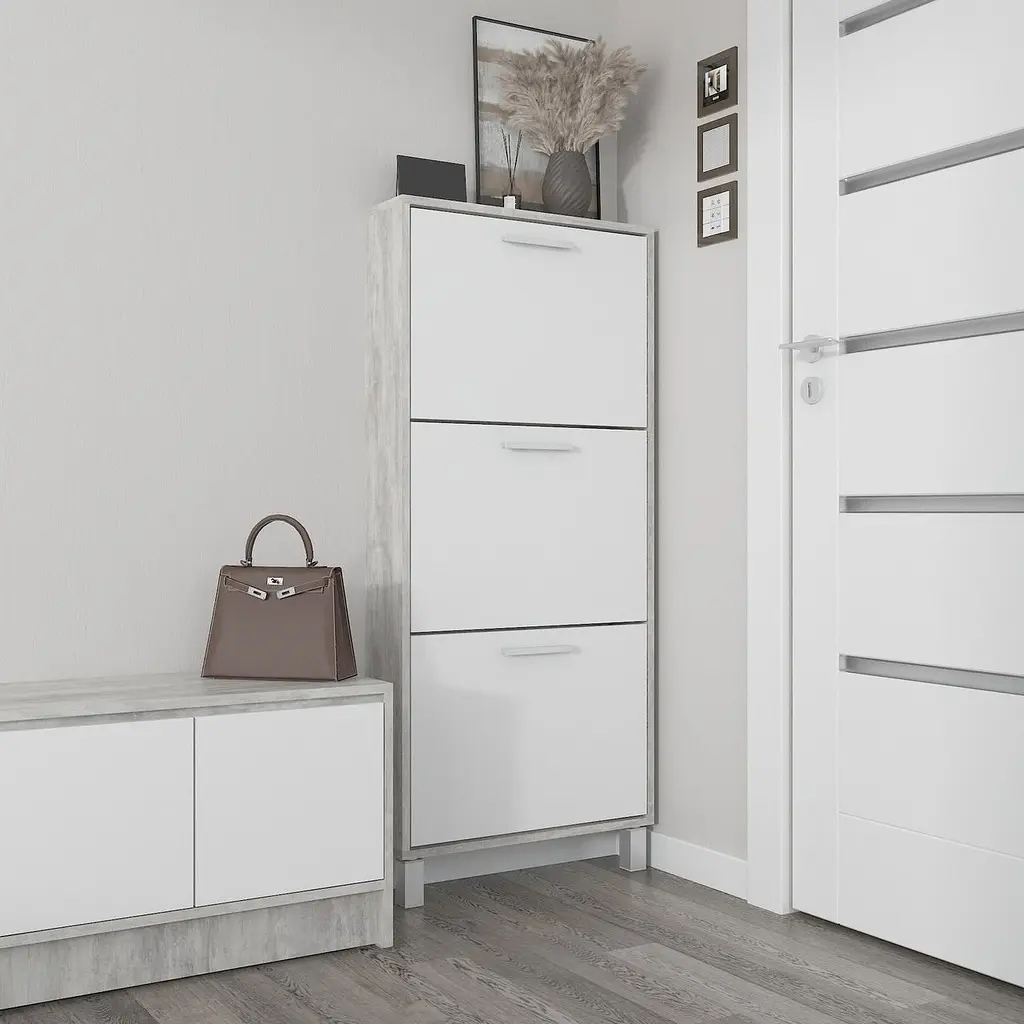 • Полиця для взуття Flamecame підлогова з ДСП F-160 Бетон Білий - мініатюра 1