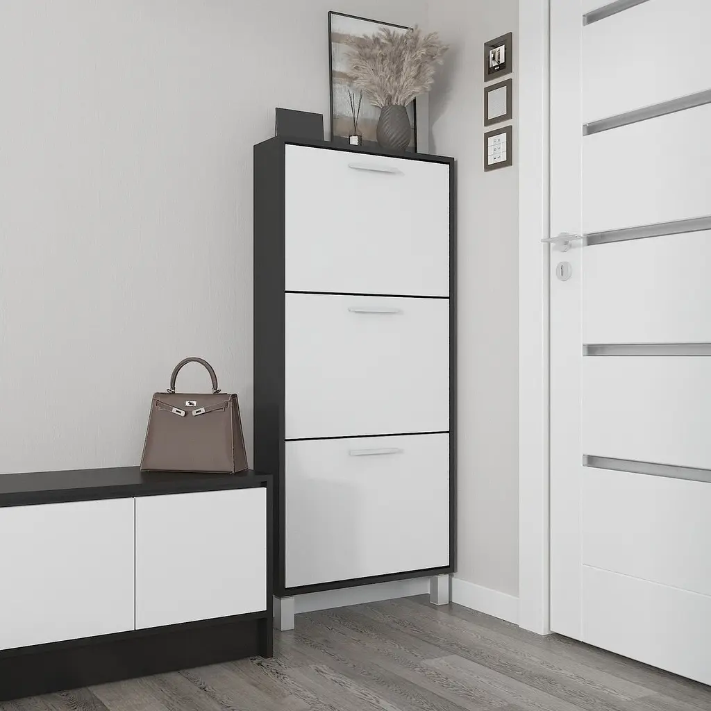 • Полиця для взуття Flamecame підлогова з ДСП F-160 Чорний Білий - мініатюра 1