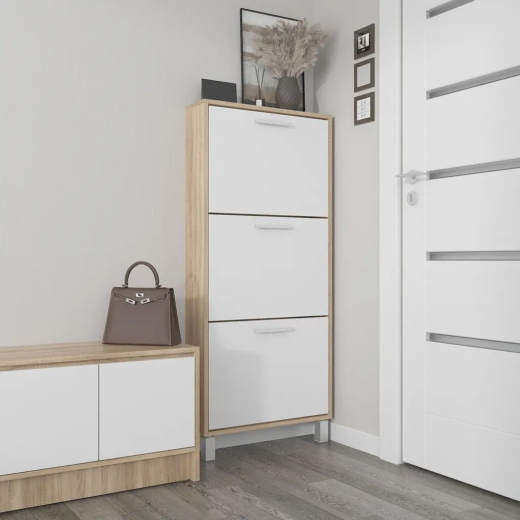 • Полиця для взуття Flamecame підлогова з ДСП F-160 Дуб сонома Білий - мініатюра 1