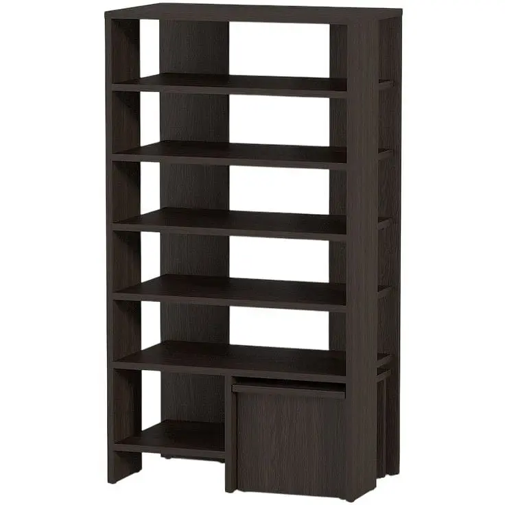 Полиця для взуття висока + табуретка з ДСП , поличка взуттєва для дому F-79. Взуттєва полка з табуретом для зручності використання - компактна, але дуже містка конструкція, яка просто не замінна в кожному будинку. Виконана з вологостійкого ДСП 16 мм.