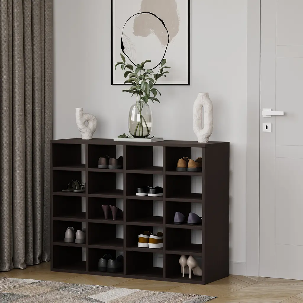 Взуттєва полиця - компактна, але дуже містка конструкція, адже вона дозволяє одночасно зберігати до 20 пар взуття. Виконана з ДСП 16 мм.