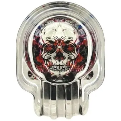 Стильний тематичний аксесуар для курців, виконаний із високоякісного термостійкого скла. Завдяки своєму унікальному дизайну у вигляді черепа вона стане чудовим доповненням до геловінського інтер'єру. Попільничка має глибокий резервуар і зручні виїмки для сигарет, забезпечуючи комфорт і чистоту під час використання.