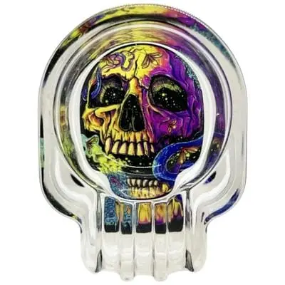 Стильний тематичний аксесуар для курців, виконаний із високоякісного термостійкого скла. Завдяки своєму унікальному дизайну у вигляді черепа вона стане чудовим доповненням до геловінського інтер'єру. Попільничка має глибокий резервуар і зручні виїмки для сигарет, забезпечуючи комфорт і чистоту під час використання.