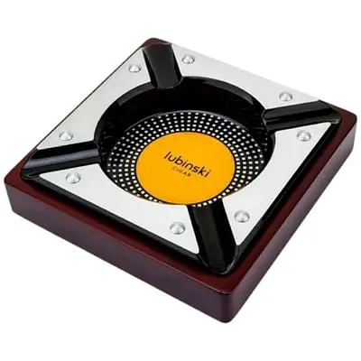 Попільничка із серії люксових товарів бренду Lubinski. Зроблена з натурального червоного дерева і полірованої сталі. Має класичний дизайнерський зовнішній вигляд, який впишеться в будь-який інтер'єр. З такою попільничкою процес куріння сигар стане куди більш захоплюючим. Стильний атрибут на будь-якому столі.